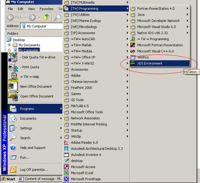 - Start -> [TW] Programming -> XDS Environment