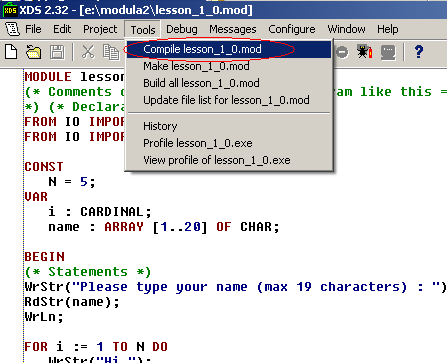 - Go to lesson 1 : Basic structure of a Modula2 program